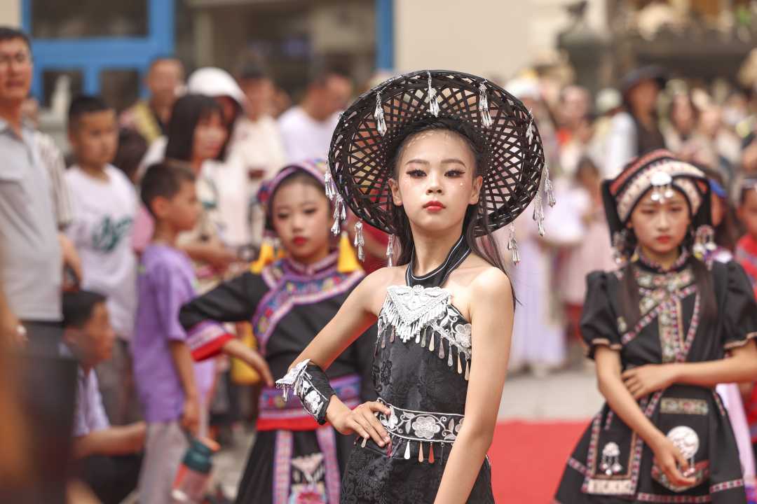 2024年5月19日,演員在庫(kù)車市龜茲小巷為游客表演模特秀。袁歡歡攝(中經(jīng)視覺(jué))
