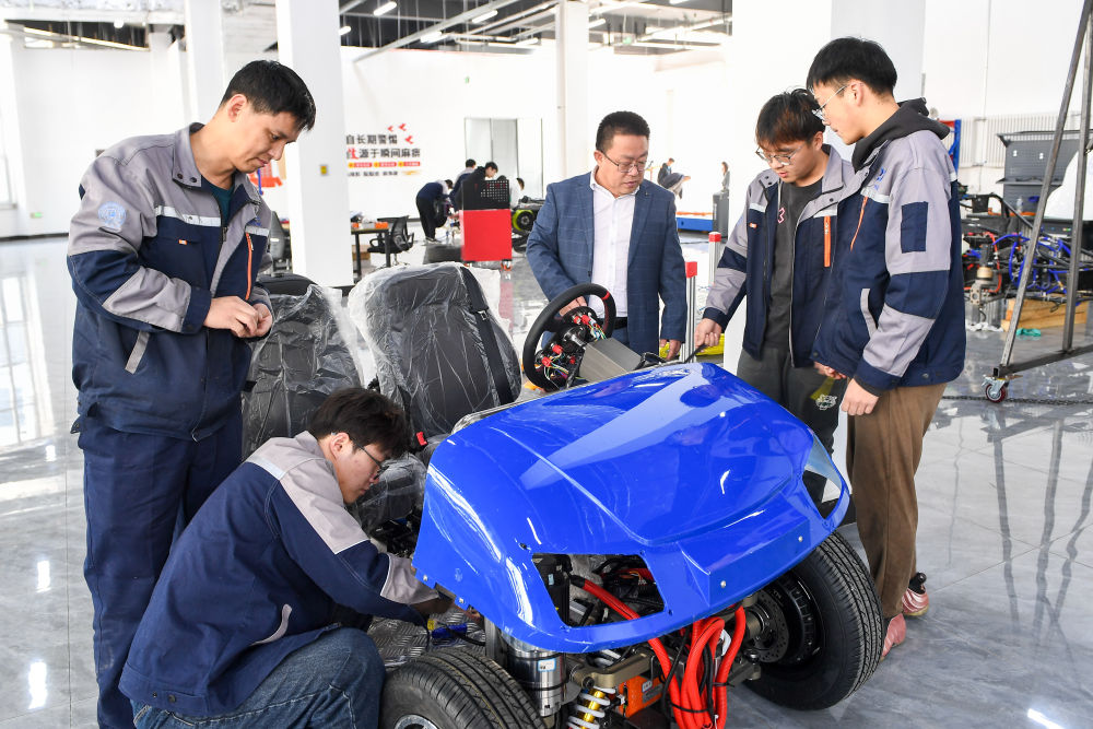 2024年3月13日,長春市麥迪克智行汽車科技有限公司,吉林大學(xué)汽車工程學(xué)院教授靳立強(qiáng)(右三)與同事檢查智能底盤樣車。新華社記者 張楠 攝