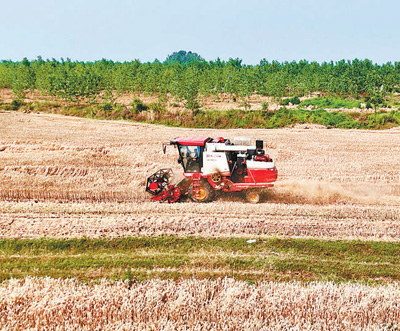 圖為蔡華駕駛農機收割小麥。廖楚雄攝(人民視覺)