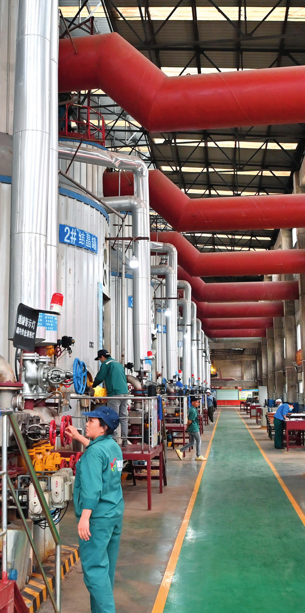 工作人員在廣西來(lái)賓小平陽(yáng)湘桂制糖有限公司煮糖車(chē)間查看(2023年12月12日攝)周華攝