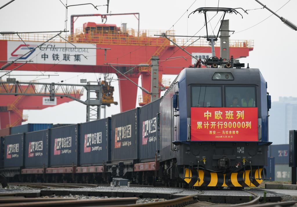 記者從中國國家鐵路集團(tuán)有限公司(下稱國鐵集團(tuán))獲悉,2024年5月25日8時40分,隨著X8157次中歐班列(西安—馬拉舍維奇)從西安國際港站開出,至此中歐班列累計(jì)開行突破9萬列,發(fā)送貨物超870萬標(biāo)箱、貨值超3800億美元,保持安全穩(wěn)定暢通運(yùn)行。