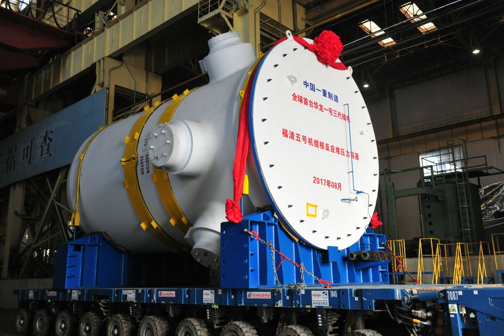 2017年8月,全球首臺“華龍一號”三代核電——福清五號機組反應(yīng)堆壓力容器準備進行吊裝(資料照片)。