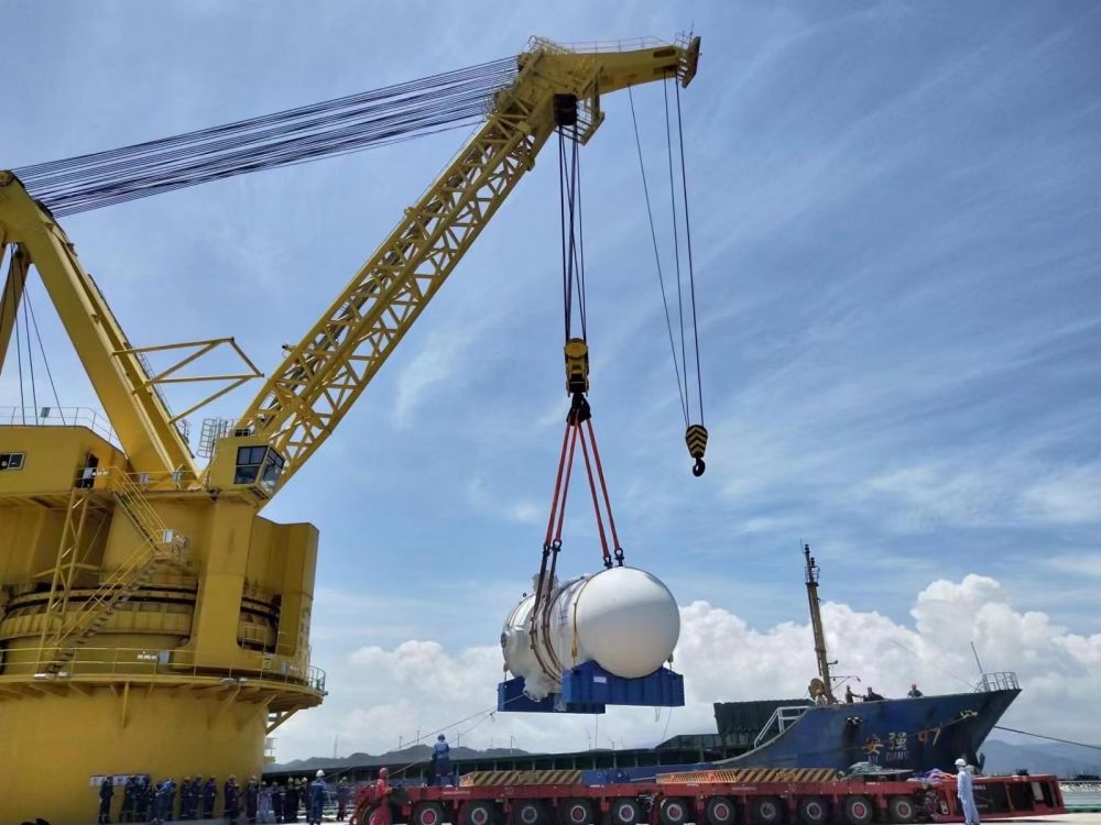2022年8月9日,我國自主三代核電“華龍一號”批量化工程——中核集團漳州核電2號機組反應(yīng)堆壓力容器在進行吊裝(資料照片)。