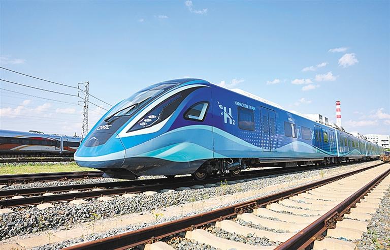 ▲5月28日,中車長客研制的全國首列氫能源市域列車。該車已于近期成功完成達速試跑,標(biāo)志著氫能在軌道交通領(lǐng)域的應(yīng)用取得歷史性突破。