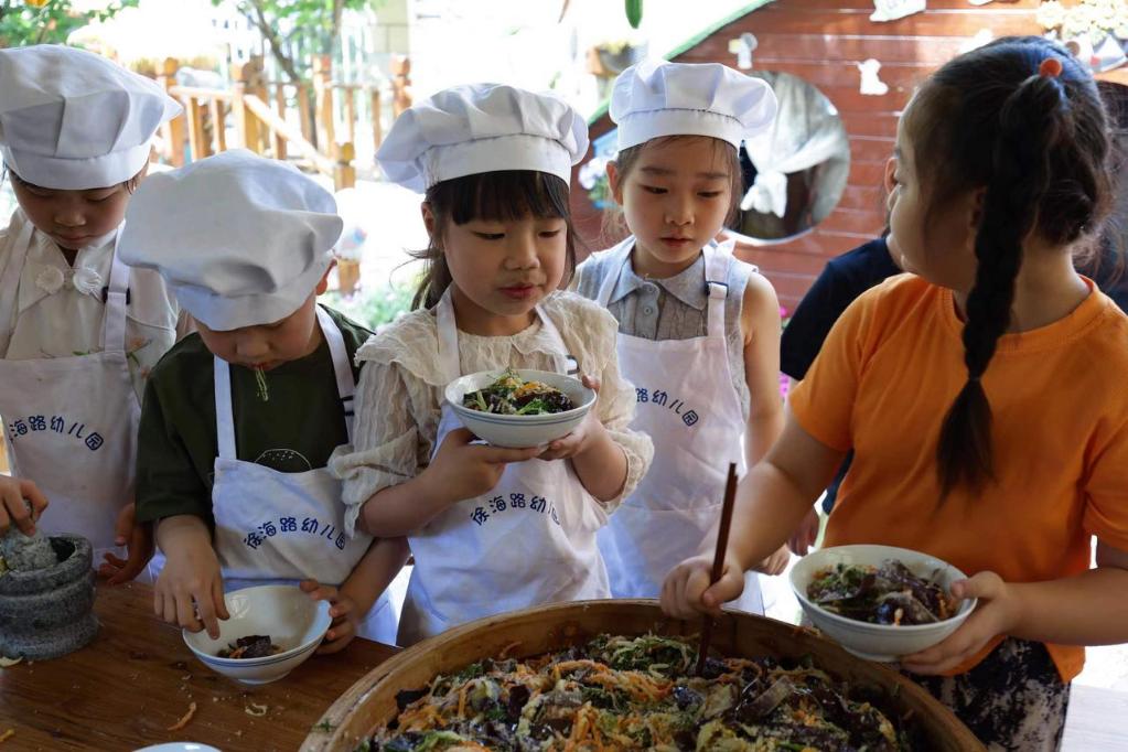 如果不是親眼所見,很難想象,這些“廚房重地”的活兒,會出現(xiàn)在一家幼兒園,“大廚”竟是一群幼兒園小朋友。