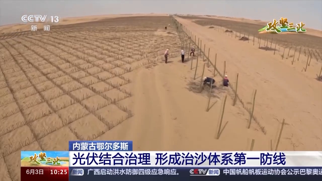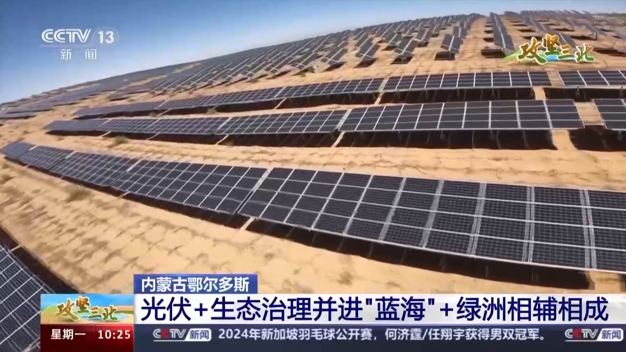 總臺記者 李欣蔓:此時此刻,我就在庫布其沙漠的西側腹地。拿我現在所在的杭錦旗朔方新能源大基地來說,這里正在探索建設的就是當下最新的光伏治沙模式。說到光伏發(fā)電,我們已經很熟悉了,那光伏治沙怎么治?今天我們就在現場找一下答案。