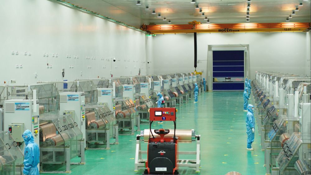 2022年12月15日,江銅銅箔科技股份有限公司生產(chǎn)車間現(xiàn)場。新華社發(fā)(江銅集團供圖)