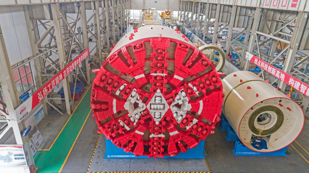 2022年10月,鐵建重工出口智利用于圣地亞哥地鐵的土壓平衡盾構(gòu)機在湖南長沙生產(chǎn)下線。新華社發(fā)(張升平 攝)