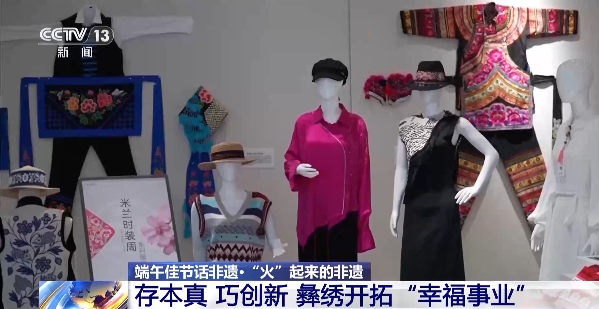 總臺(tái)記者 李騰飛:楚雄是全國兩個(gè)彝族自治州之一,這里有句話叫“十里不同天,隔山不同服”,說的就是彝繡的豐富與多樣。我身后就陳列展示著許多有代表性的彝繡作品。