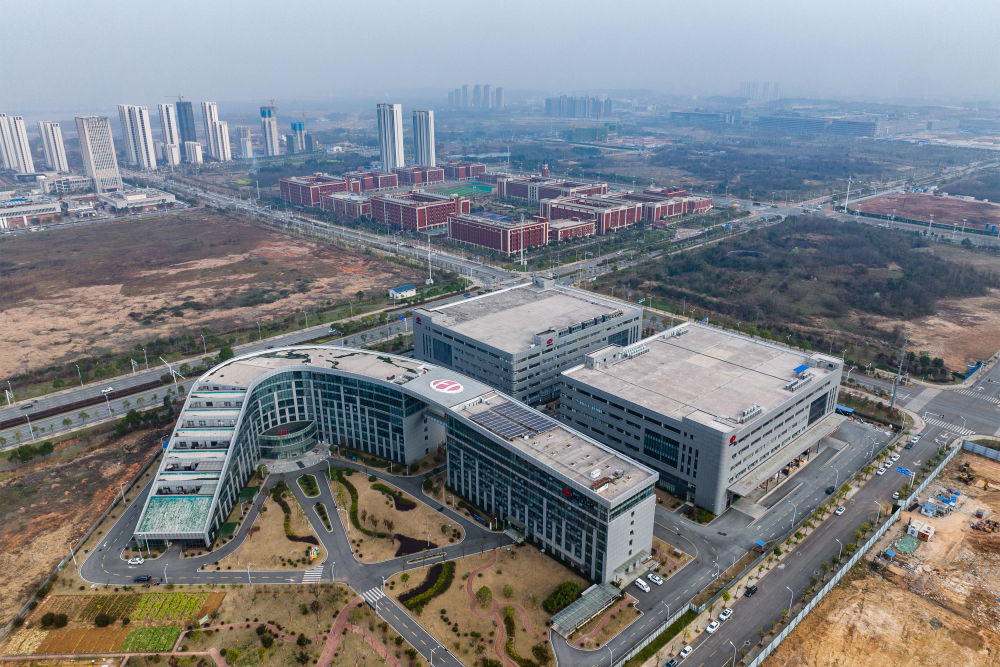 2024年3月16日拍攝的武漢華工激光工程有限責任公司大樓(無人機照片)。