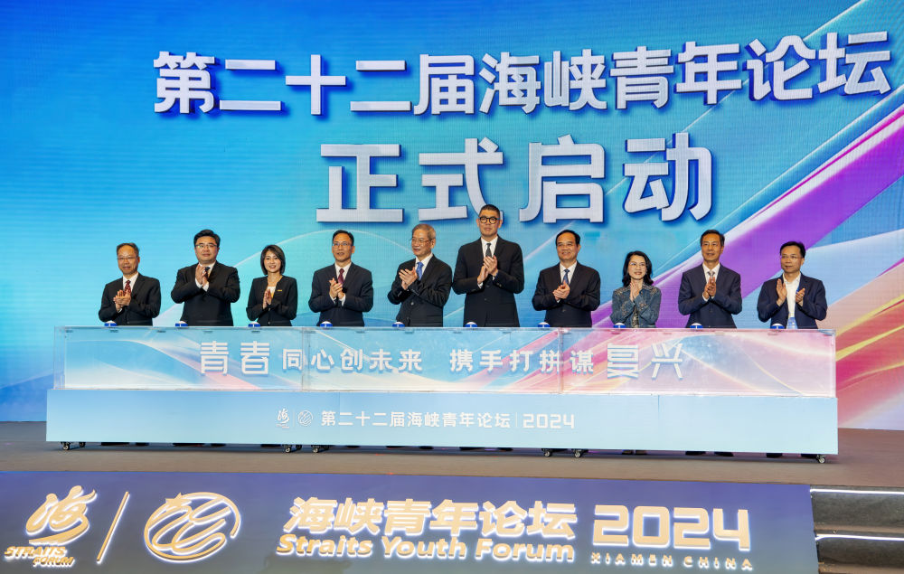 6月14日,出席海峽青年論壇的嘉賓共同啟動(dòng)第二十二屆海峽青年論壇。新華社記者 魏培全 攝