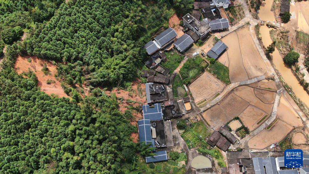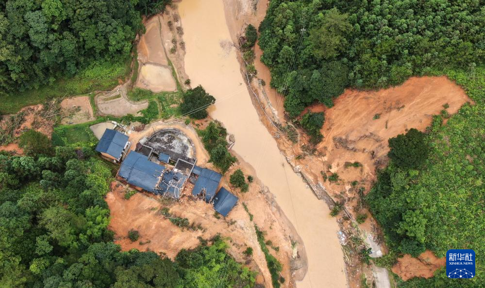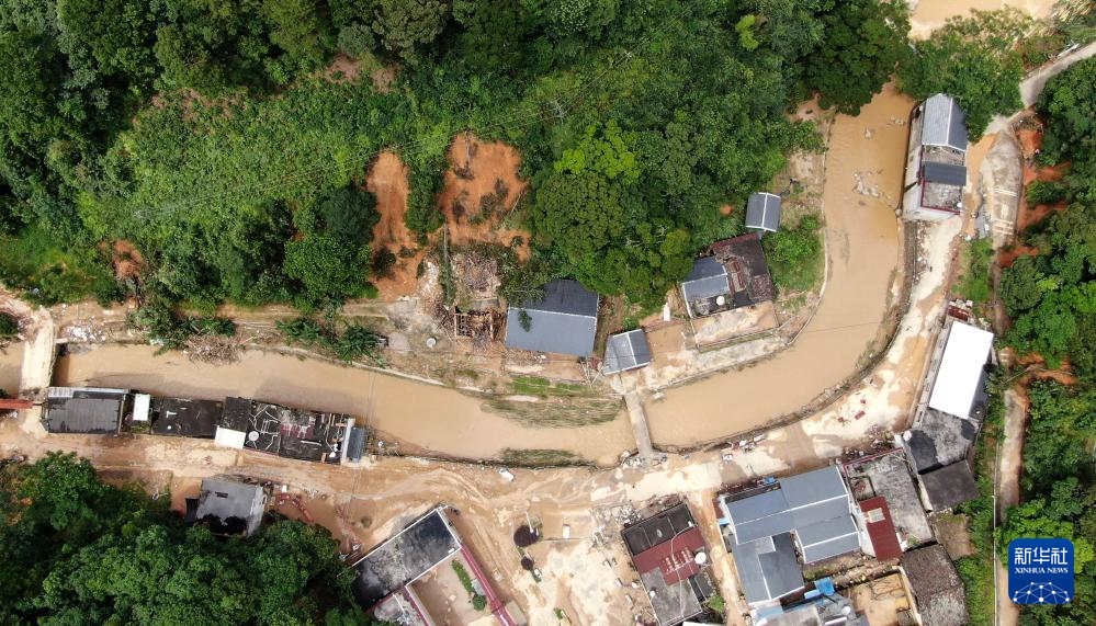 災(zāi)后的廣東省梅州市平遠(yuǎn)縣泗水鎮(zhèn)大新村(6月19日攝,無人機(jī)照片)。新華社記者 盧漢欣 攝