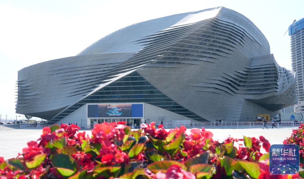 ↑ 這是6月25日拍攝的第十五屆夏季達(dá)沃斯論壇主會(huì)場(chǎng)大連國(guó)際會(huì)議中心外景。