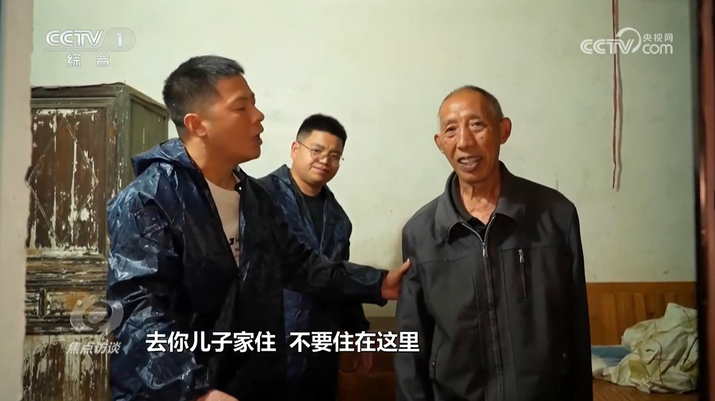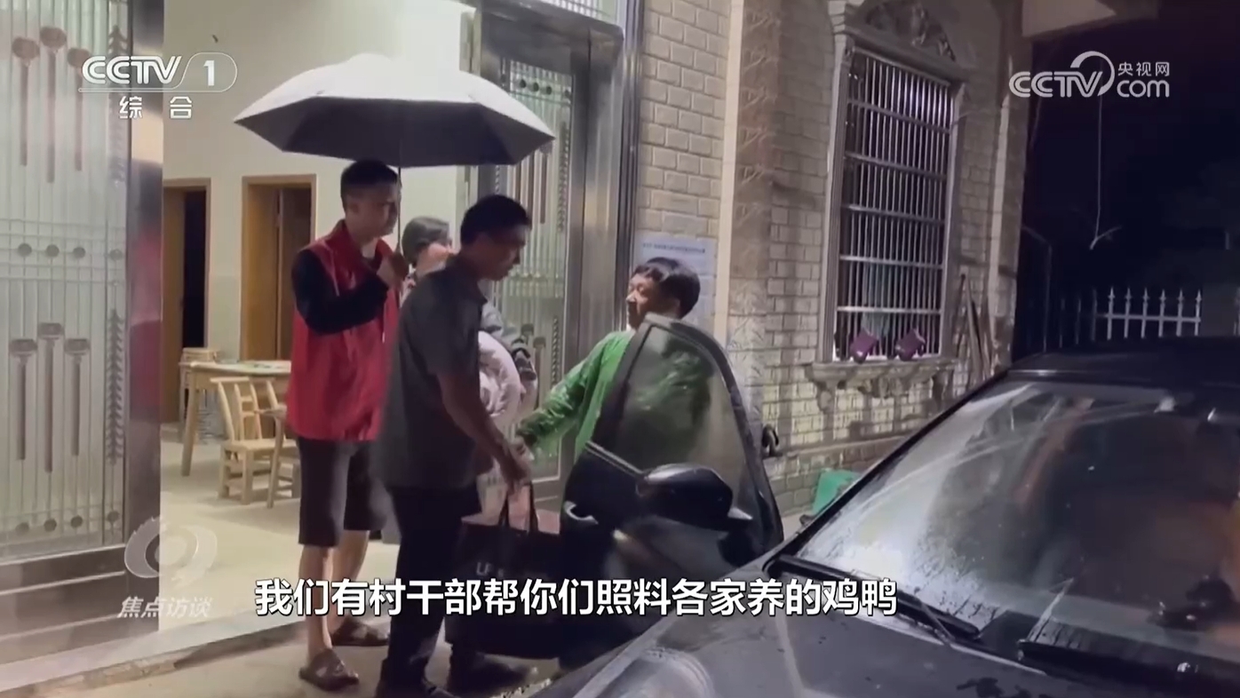 在鎮(zhèn)村干部的耐心勸說下,這位村民答應(yīng)和妻子一起去孩子家里住。老人看不清夜路,鎮(zhèn)村干部就分工合作,一人背、一人扶,并安排了車子進行護送。