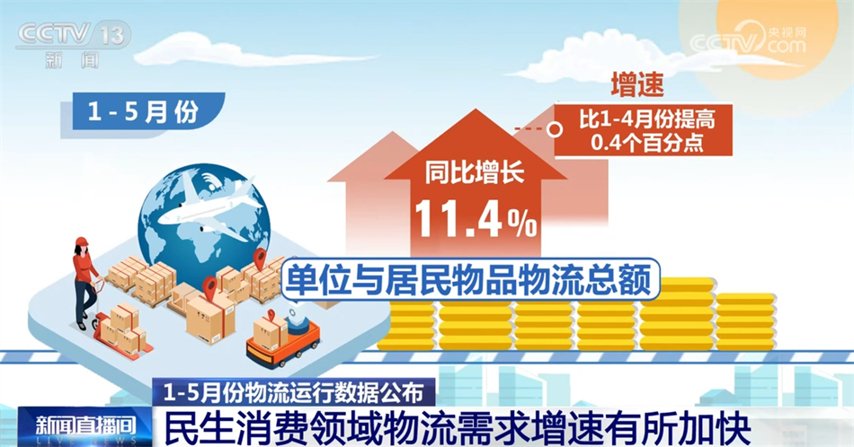 中國(guó)物流信息中心主任劉宇航表示,從1—5月我國(guó)社會(huì)物流運(yùn)行情況來(lái)看,總體還是保持穩(wěn)中向好。從消費(fèi)的情況來(lái)看,5月份以來(lái)整個(gè)消費(fèi)活力比較強(qiáng),消費(fèi)增速比較明顯。