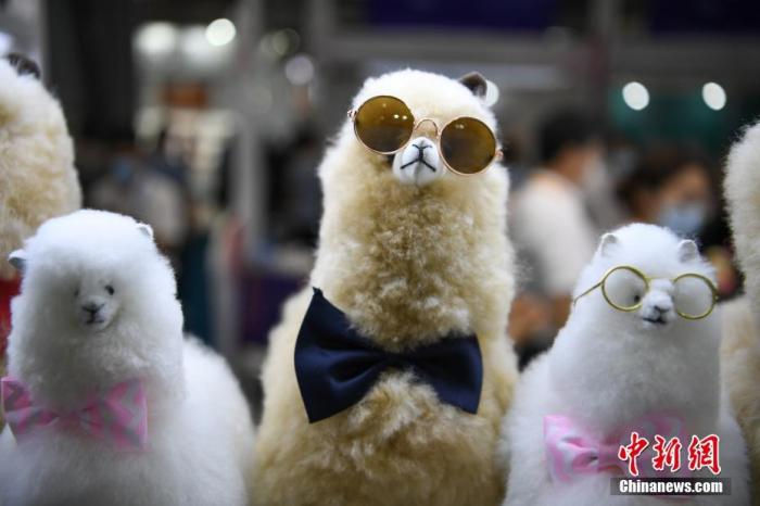 資料圖:2021年5月7日,首屆中國國際消費品博覽會在海南省海口市正式開展,秘魯羊駝毛產(chǎn)品品牌Warmpaca攜各種羊駝萌寵玩偶亮相消博會。 中新社記者 崔楠 攝