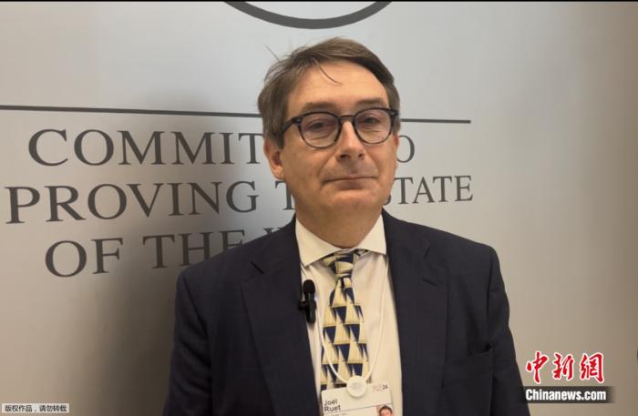 2024年6月27日,法國橋智庫主席、G20工商峰會能源工作組成員周瑞(Joel Ruet)在2024年夏季達(dá)沃斯論壇期間接受中新網(wǎng)專訪。中新網(wǎng)陳彩霞攝