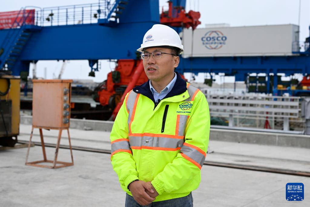 6月21日,在秘魯錢凱港,中遠(yuǎn)海運(yùn)港口秘魯錢凱公司常務(wù)副總經(jīng)理何波接受新華社記者采訪。 新華社記者 李木子 攝