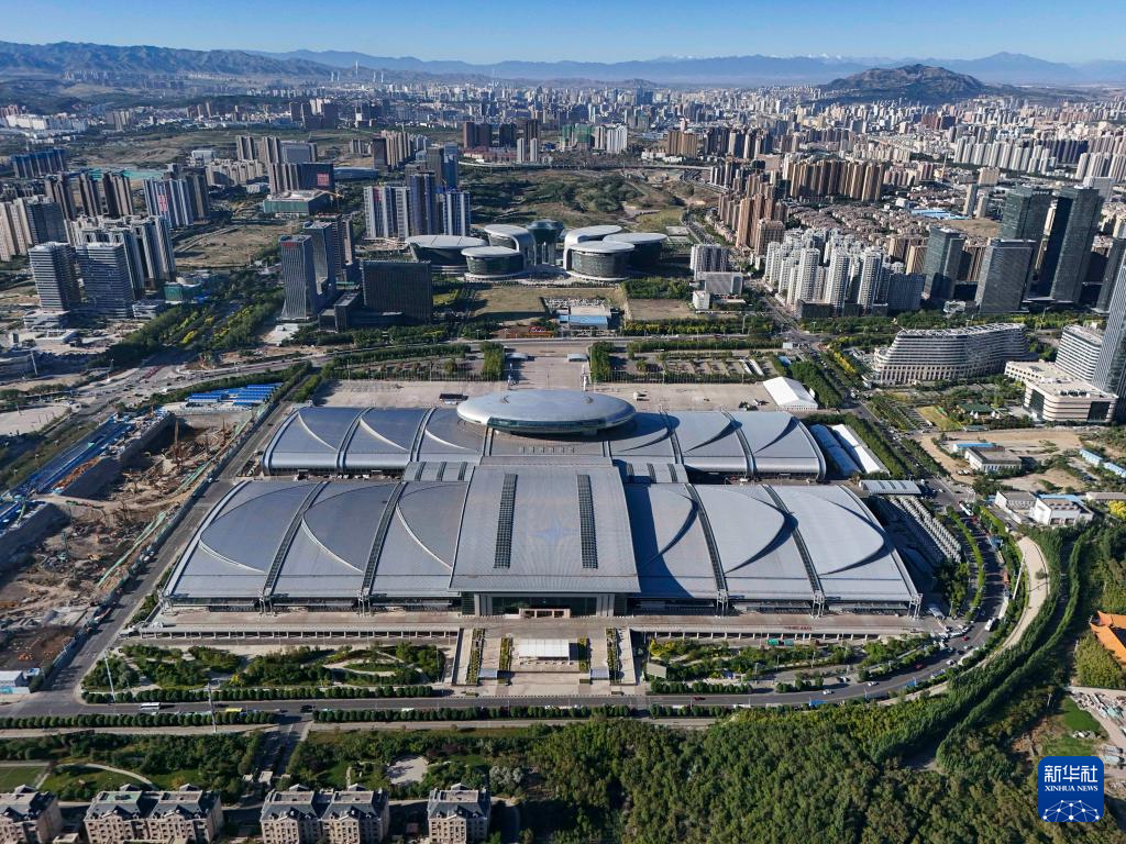 新疆國際會展中心及周邊城區(qū)景觀(2024年6月21日攝,無人機照片)。新華社記者 胡虎虎 攝
