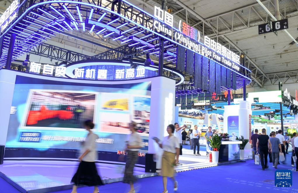 2024年6月27日,在第八屆中國—亞歐博覽會上,觀眾在中國(新疆)自由貿易試驗區(qū)展臺參觀。新華社記者 王菲 攝