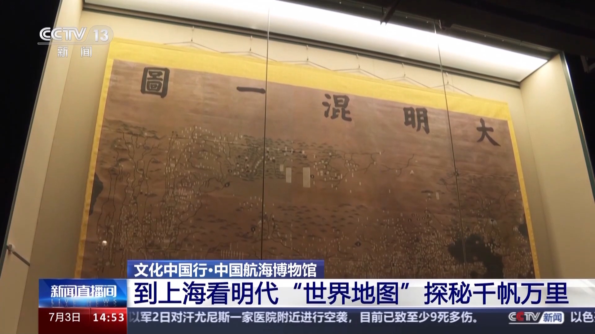 將航海技術(shù)及相關(guān)知識沿著時間順序展開,是“航海歷史展廳”的一個特色設(shè)計。這件高高懸掛的《大明混一圖》復(fù)制件,因其深厚的歷史文化底蘊(yùn),成為中國航海博物館一處熱門打卡地。《大明混一圖》原圖制作于明洪武年間,高3.86米,寬4.56米,是我國目前已知尺寸最大、年代最久遠(yuǎn)、保存最完好的“古代世界地圖”。這幅明代版的“世界地圖”,因較早描繪非洲準(zhǔn)確方向及其南端的三角形地帶而引人矚目。
