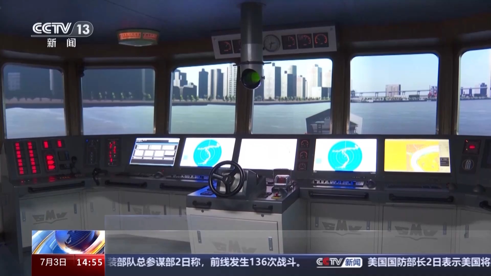 舵輪右手邊的手柄,用來控制主機(jī)轉(zhuǎn)速。操縱臺的左右兩邊,為雷達(dá)監(jiān)測顯示屏幕,代替人眼感知環(huán)境,在霧天航行、夜間航行時給駕駛員提供便利。它以大型集裝箱船駕駛室為原型,盡可能還原現(xiàn)代化船舶駕駛工作的真實(shí)場景。