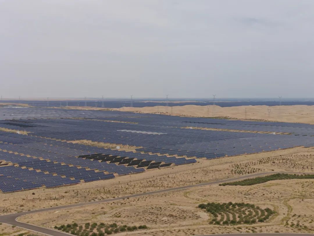 從高空俯瞰,位于鄂爾多斯的達(dá)拉特光伏發(fā)電應(yīng)用領(lǐng)跑基地,像一片深藍(lán)色的海面,覆蓋于庫布其沙漠上。每年,這個(gè)項(xiàng)目可以發(fā)“綠電”20億度,節(jié)約標(biāo)煤68萬噸,減排二氧化碳約165萬噸。