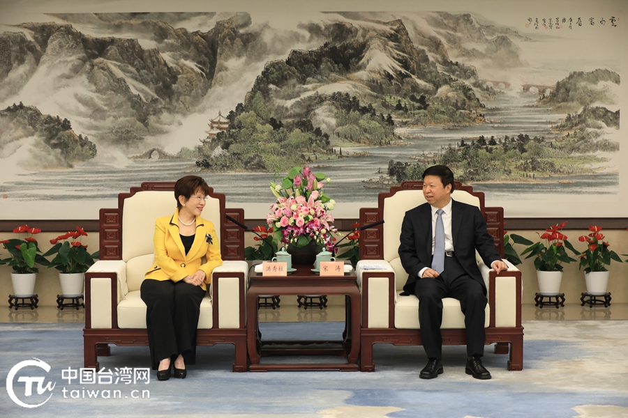 中國臺(tái)灣網(wǎng)杭州7月8日訊 中共中央臺(tái)辦、國務(wù)院臺(tái)辦主任宋濤8日在杭州會(huì)見出席第七屆海峽兩岸青年發(fā)展論壇的中國國民黨前主席、中華青雁和平教育基金會(huì)董事長洪秀柱一行。