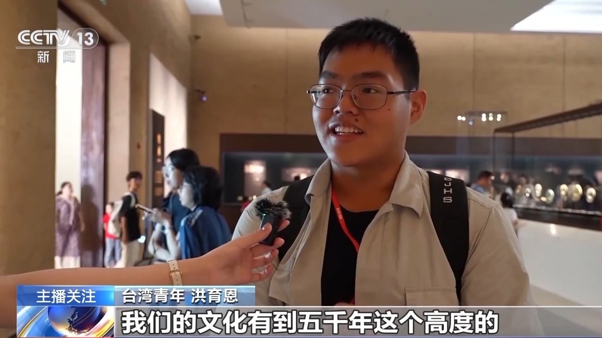 臺灣青年 洪育恩:我踏上這一塊土地,回到我們的故土,去感受一下到底現(xiàn)在有什么不一樣,而不是聽信謠言,我踏上來,感覺繁榮美好。對于文物大家都很努力地去保存,對我來說,如果有幸真的能來大陸進(jìn)行考古,我是蠻希望能來的。