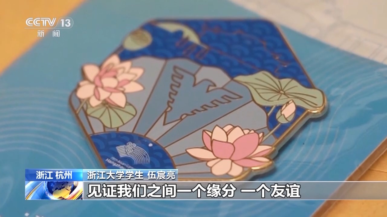 浙江大學(xué)學(xué)生 伍宸亮:這個徽章是浙江大學(xué)在去年的杭州亞運(yùn)會、亞殘運(yùn)會期間為志愿者設(shè)計的一個專屬的徽章,在徽章設(shè)計的過程中,它是全由我們同學(xué)自己設(shè)計的,也希望以這枚徽章,見證我們之間的緣分和友誼。