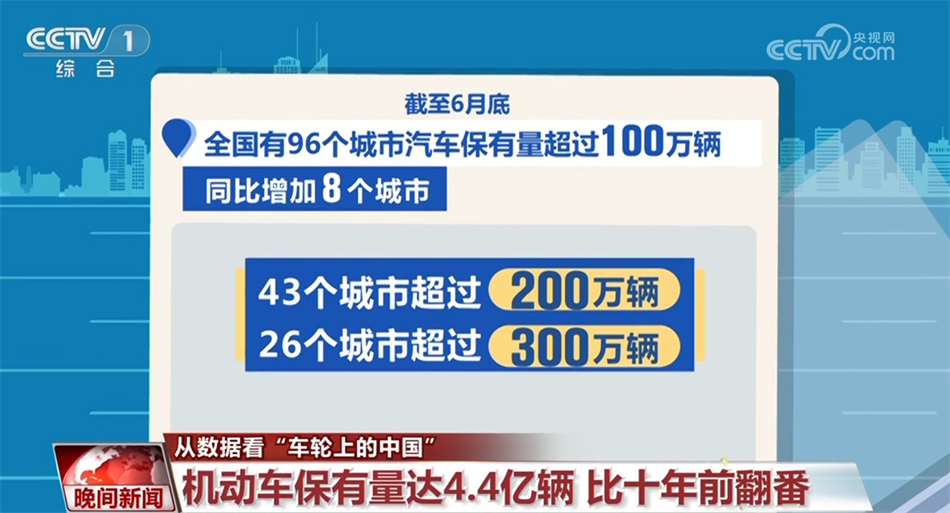 據(jù)公安部統(tǒng)計(jì),2024年上半年,全國新注冊登記機(jī)動(dòng)車1680萬輛,新注冊登記汽車1242萬輛,同比增長5.70%。截至6月底,全國機(jī)動(dòng)車保有量達(dá)4.4億輛,其中汽車3.45億輛。截至6月底,全國有96個(gè)城市的汽車保有量超過100萬輛,同比增加8個(gè)城市。43個(gè)城市超過200萬輛,26個(gè)城市超過300萬輛。其中,成都、北京、重慶的汽車保有量超過600萬輛,上海、蘇州、鄭州的汽車保有量超過500萬輛。汽車保有量4.4億輛這一數(shù)據(jù),相比于10年前2014年的1.54億輛,翻了一倍都不止。而2014年的汽車新注冊量和年增量已經(jīng)刷新了當(dāng)時(shí)的紀(jì)錄。