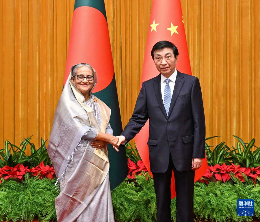 全國政協(xié)主席王滬寧9日在京會見孟加拉國總理哈西娜。