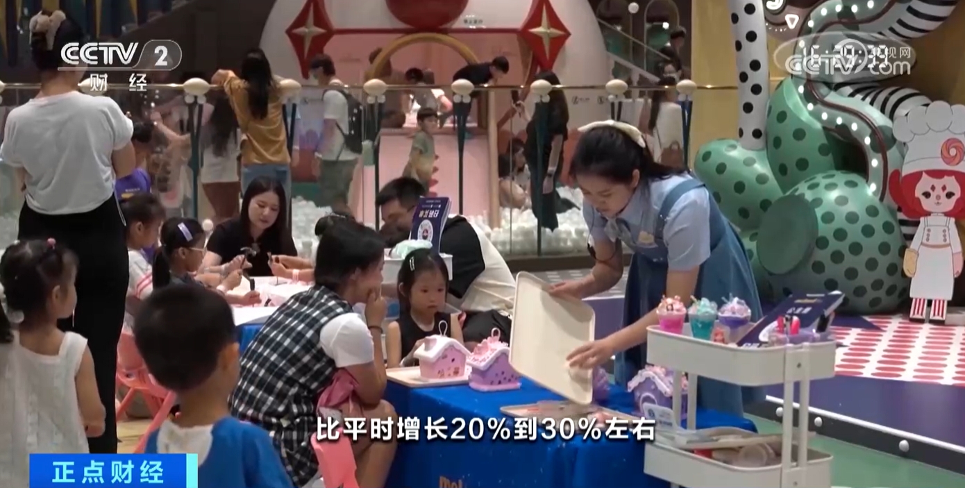 某室內(nèi)游樂場深圳一方天地店值班經(jīng)理麥麗勤介紹:“比平時增長20%至30%左右,因為孩子們放假了,家長們也有空帶孩子們過來玩。”