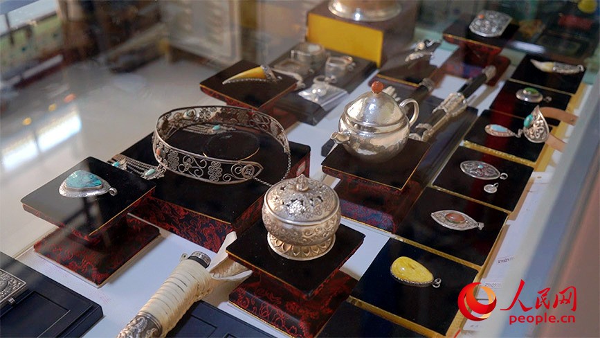 街上的“守藝”工作室里游客絡(luò)繹不絕,項(xiàng)鏈、手鏈、耳飾等蒙古族銀飾令人目不暇接。作品傳承了蒙古族銀飾,融合各民族文化的元素,每一件飾品都是特別精致的藝術(shù)品。據(jù)店主蘇力迪介紹,這里制作的手工藝品已遠(yuǎn)銷(xiāo)東南亞。
