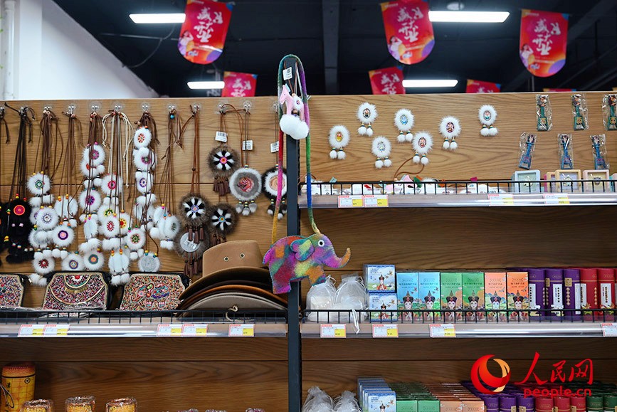 東山紅星不夜城商店內(nèi)售賣(mài)的民族手工藝品。人民網(wǎng)記者 劉藝琳攝