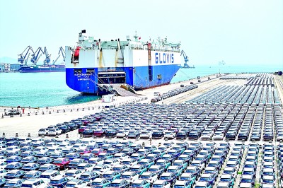 加快推進(jìn)涉外立法工作、協(xié)調(diào)推進(jìn)國內(nèi)治理和國際治理,使得國內(nèi)大循環(huán)和國內(nèi)國際雙循環(huán)不斷暢通。圖為山東港口煙臺(tái)港汽車碼頭,整齊停放的商品車等待運(yùn)輸。新華社發(fā)