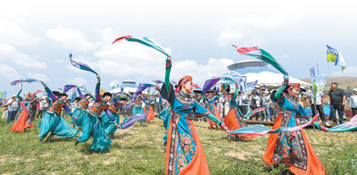 草原那達(dá)慕開幕式上載歌載舞。