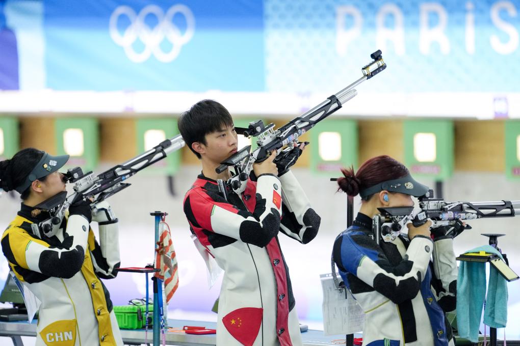 巴黎奧運(yùn)會(huì)首金大概率將在射擊項(xiàng)目的10米氣步槍混合團(tuán)體上產(chǎn)生。代表中國(guó)隊(duì)出戰(zhàn)的是黃雨婷/盛李豪和韓佳予/杜林澍兩對(duì)組合。四人中僅盛李豪有過(guò)奧運(yùn)經(jīng)驗(yàn),他在東京奧運(yùn)會(huì)上一鳴驚人奪得男子10米氣步槍銀牌。三年過(guò)去,盛李豪更加成熟,他的混團(tuán)搭檔黃雨婷年齡雖小,在賽場(chǎng)上卻異常沉穩(wěn),兩人已攜手奪得世錦賽、亞運(yùn)會(huì)等多項(xiàng)大賽冠軍。