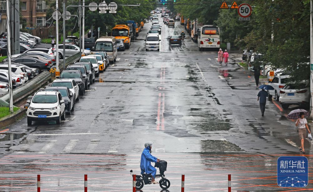 7月28日,在遼寧省沈陽(yáng)市和平區(qū),市民在雨中出行?! ⌒氯A社記者 楊青 攝