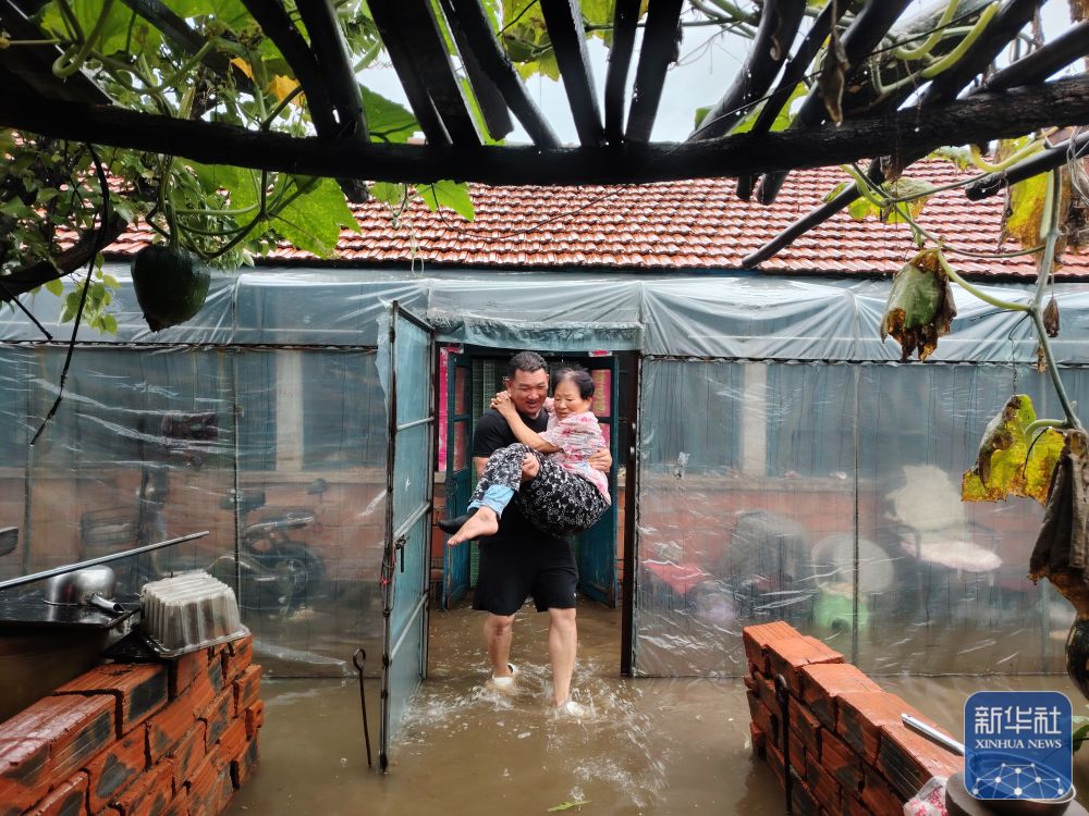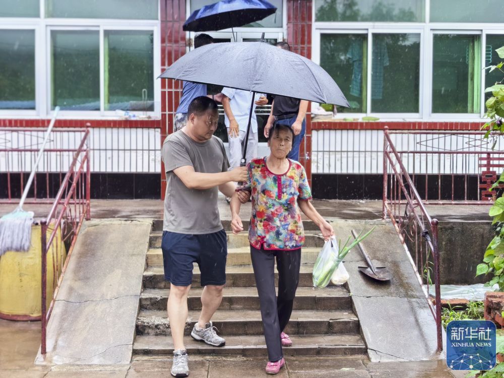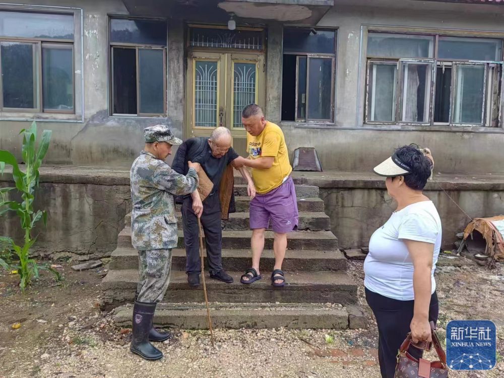 7月27日,在遼寧省鞍山市千山區(qū)老虎屯村,村干部在轉(zhuǎn)移受災(zāi)群眾。 新華社發(fā)