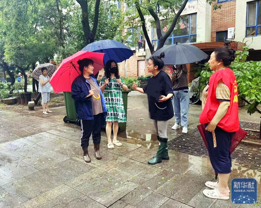 7月27日,營(yíng)口市站前區(qū)建豐街道工作人員叮囑居民注意安全。 新華社發(fā)