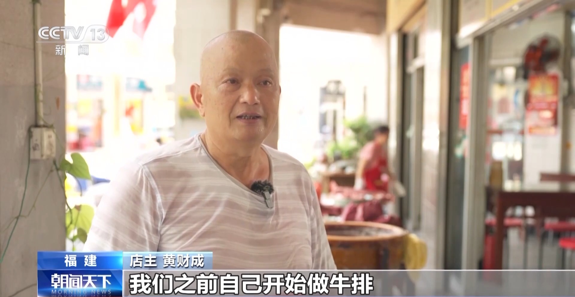店主 黃財(cái)成:一百多年前國(guó)外的人來(lái)泉州經(jīng)商,基本上都是吃牛肉的。我們之前自己開(kāi)始做牛排、牛肉羹、牛雜。當(dāng)年我爺爺去南洋幫廚,再來(lái)到我們這邊改良,特別是華僑大學(xué)的留學(xué)生,周六周日都來(lái)我們這家店吃。