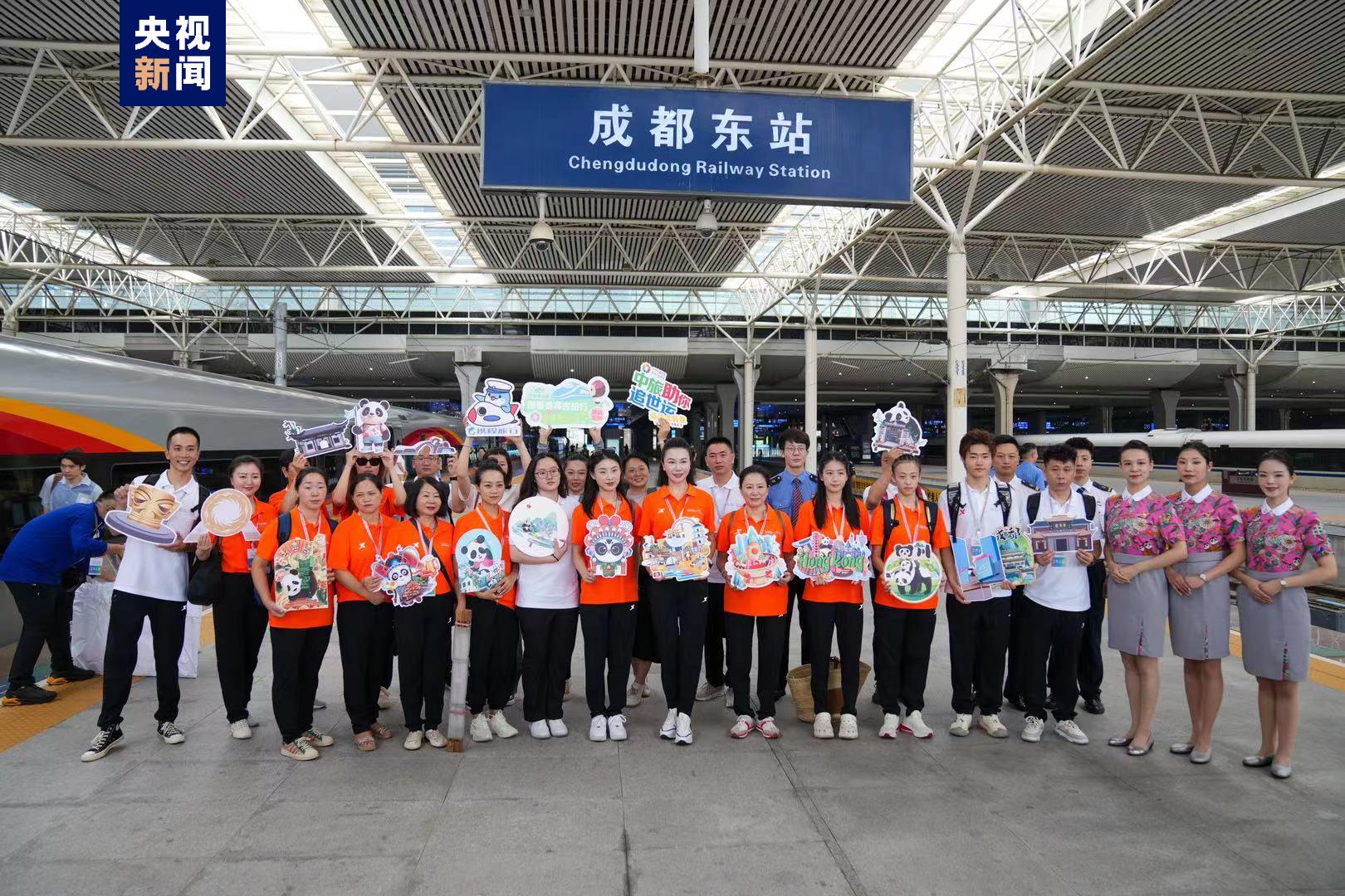 記者從成都世運會執(zhí)委會和中國鐵路成都局集團公司了解到,今天發(fā)車的“世運蓉港行”主題列車(G2963成都東站——香港西九龍站),搭載了川籍奧運冠軍、輪滑運動員、蓉港企業(yè)家、川劇藝術家、非遺傳承人、川菜企業(yè)、博物館金牌講解員等嘉賓赴港。