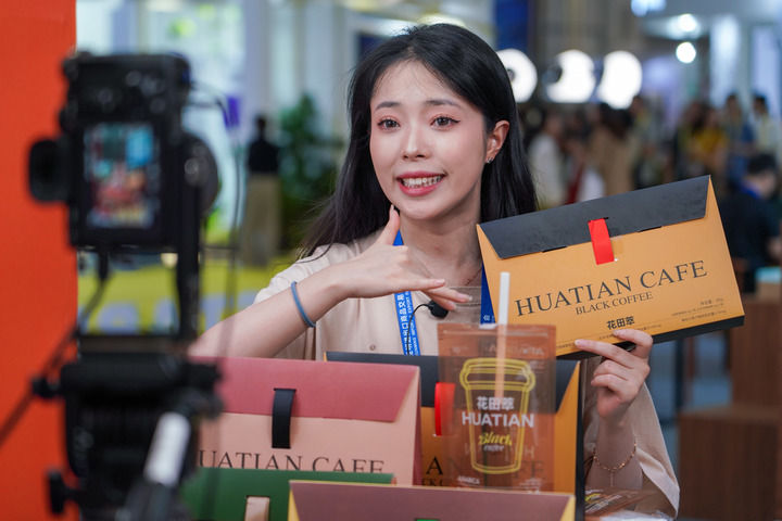 2024年7月24日,參展商在南博會咖啡產業(yè)館直播帶貨。新華社記者 王靜頤 攝