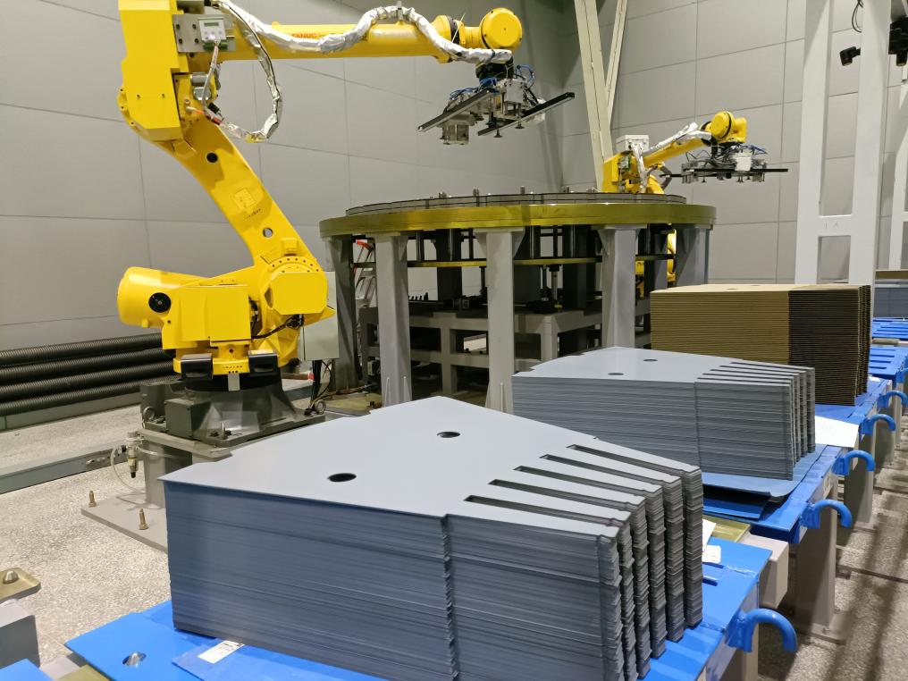 2024年上半年,東輕“數(shù)智化圓錠加工園區(qū)”正式落成。在這條由蘇聯(lián)援建的鋁合金中小直徑圓錠生產(chǎn)線上,機(jī)器人無(wú)需人工干預(yù),通過(guò)全自動(dòng)的定位和抓取,短時(shí)間內(nèi)就能完成上料填裝等全套流程?!案脑烨?,這條生產(chǎn)線各道工序均需人工參與,效率較低且伴有高強(qiáng)度重復(fù)性勞動(dòng)。”東輕熔鑄廠設(shè)備保障組二級(jí)技師王驍睿介紹,“機(jī)器人操作在保障生產(chǎn)進(jìn)度、提高作業(yè)質(zhì)量的同時(shí),有效緩解了崗位人手配置壓力。人機(jī)分離后,安全保障也得到了明顯提升?!?/p>