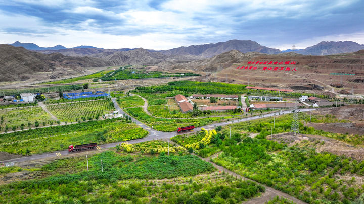 寧夏石嘴山市石炭井大磴溝生態(tài)修復示范區(qū)(2024年8月6日攝,無人機照片)。