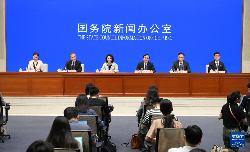 8月16日,國務(wù)院新聞辦公室在北京舉行新聞發(fā)布會,商務(wù)部國際貿(mào)易談判副代表李詠箑、山東省副省長宋軍繼、商務(wù)部國際貿(mào)易經(jīng)濟(jì)合作研究院副院長曲維璽、山東省商務(wù)廳廳長陳飛、青島市副市長王波介紹2024年跨國公司領(lǐng)導(dǎo)人青島峰會有關(guān)情況,并答記者問。新華社記者 李賀 攝