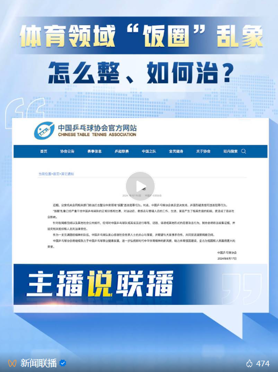 這兩天,中國乒協(xié)、中國體操協(xié)會相繼發(fā)聲,譴責(zé)體育領(lǐng)域的“飯圈”亂象。這一亂象到底該怎么整?如何治?點擊視頻↓↓↓