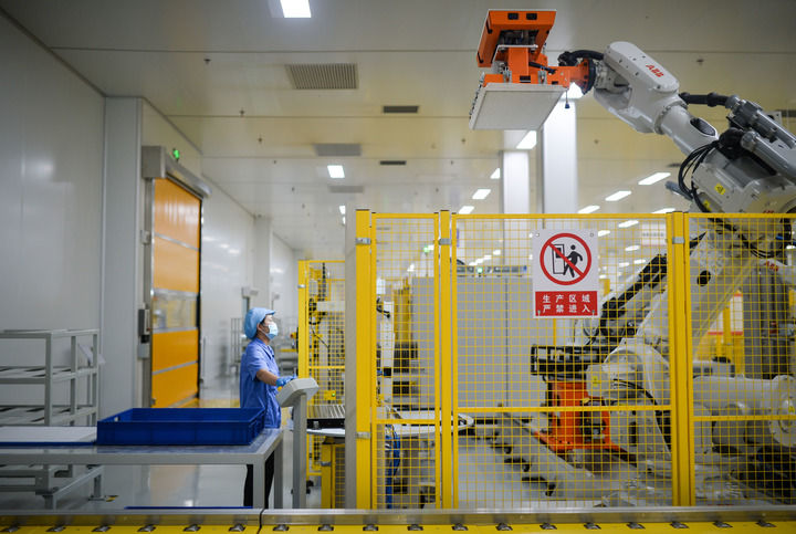 2024年5月19日,工人在位于廣東珠海的緯景儲能珠?!俺珿工廠”工作。該項目是先進(jìn)液流儲能電池及系統(tǒng)的智能制造中心。新華社記者 李任滋 攝