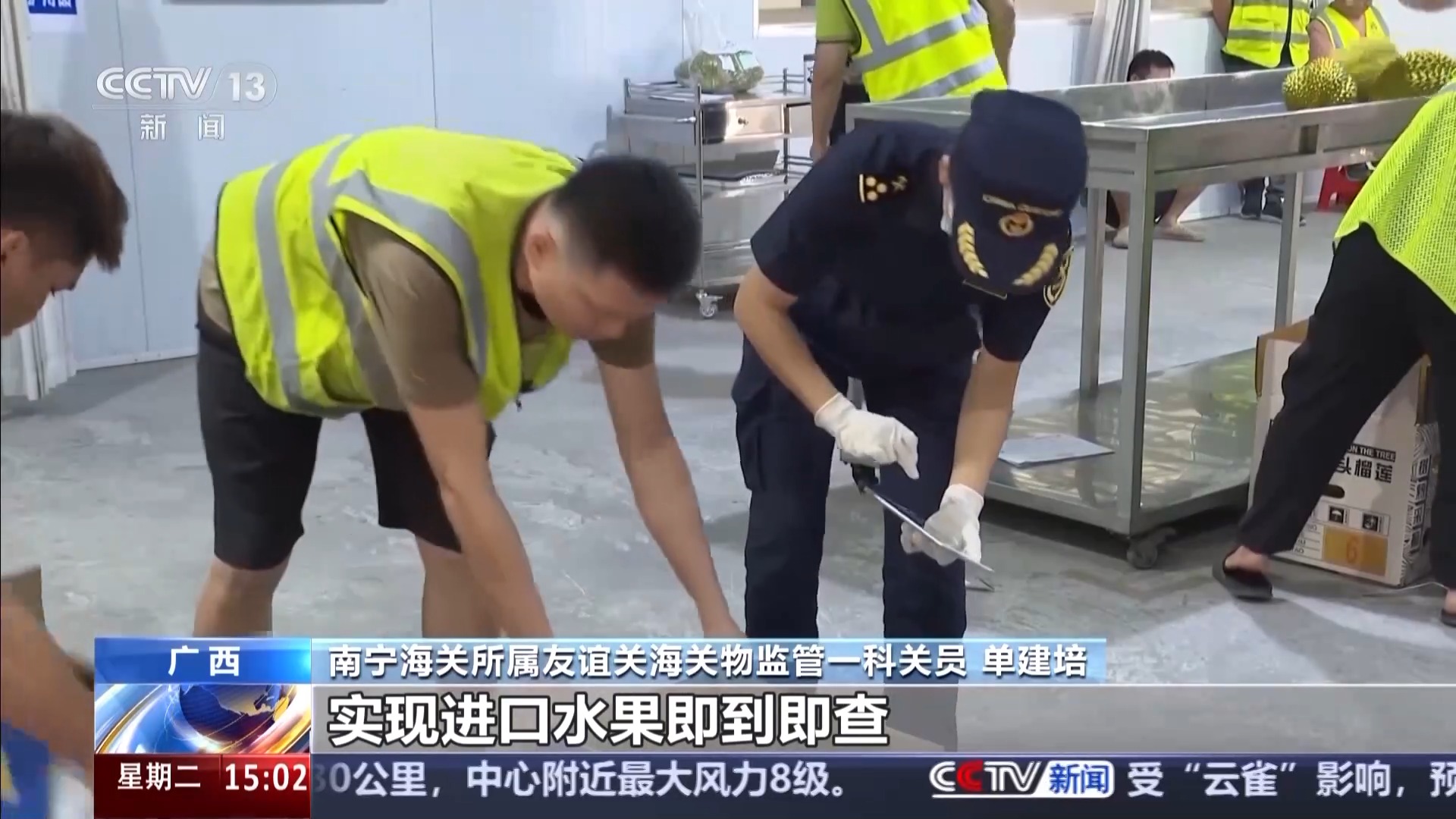 南寧海關(guān)所屬友誼關(guān)海關(guān)物監(jiān)管一科關(guān)員 單建培:友誼關(guān)口岸是廣西最大的水果進口口岸,系統(tǒng)能自動識別查驗車位空閑狀態(tài),自動通知車輛進場排隊,壓縮貨物等待時間20%,查驗車位周轉(zhuǎn)率提升35%,實現(xiàn)進口水果即到即查。
